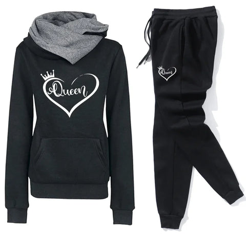 Womens Print Hooded Jogging Pants Sets