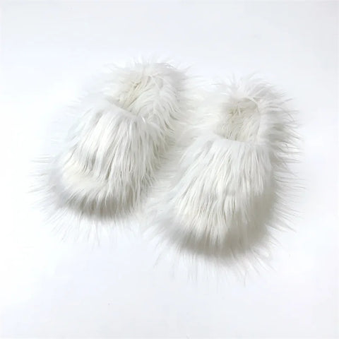 Faux Fur Slippers 2023 Women Winter Plush Warm Home Flat Slides Mongolian Wool Flip Flops Y2K Girls Furry Shoes Cute Slippers