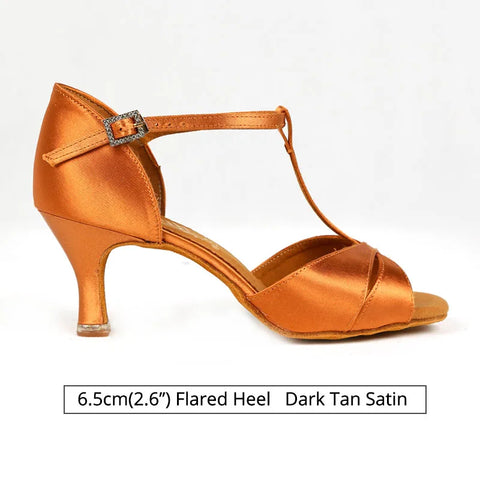 BD Dance Shoes Professional Women Satin Latin Shoe Ladies Sandal Latin Dancing Shoes Soft Leather Sole High Heel T Bar