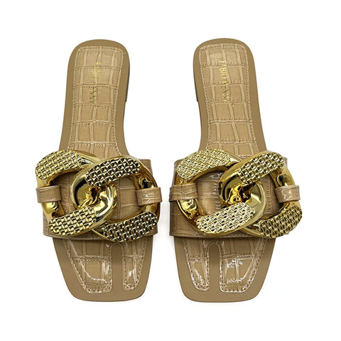 SPECIFICATIONSApplicable Place: OutsideBrand Name: ZMPDXYCN: GuangdongClosure Type: BuckleDepartment Name: ADULTFashion Element: Metal decorationFit: Fits true to size, take your normal sizeGender: WomenHeel Height: Low (1cm-3cm)Heel Type: Flat withHign-concerned Chemical: NoneInsole Material: PUItem Type: slippersLining Material:...